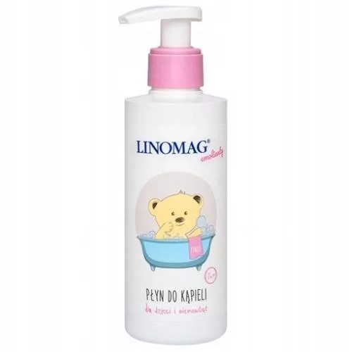 LINOMAG Żel do mycia ciała i głowy dla dzieci polecany do codziennej kąpieli dzieci i niemowląt od 1. dnia życia. Substancje aktywne stanowią połączenie łagodnych środków myjących, oleju lnianego bogatego w NNKT, w tym kwasy omega-3 i omega-6 oraz pantenolu.