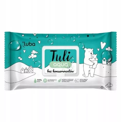 Nawilżane chusteczki wodne - Luba Tuli Aqua, to nie tylko produkt, to obietnica czystej i delikatnej pielęgnacji dla maluszka. W pełni inspirowane naturą i prostotą, stanowią doskonałą alternatywę dla tradycyjnych chusteczek, zapewniając jednocześnie wygodę i bezpieczeństwo na każdym kroku.