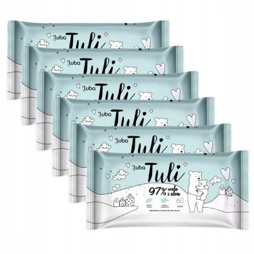 LUBA Tuli Nawilżane chusteczki dla dzieci i niemowląt 97% woda i aloes - zestaw 6 opakowań
