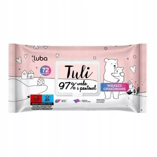 LUBA Tuli Nawilżane chusteczki dla dzieci i niemowląt 97% woda i pantenol, 72szt.