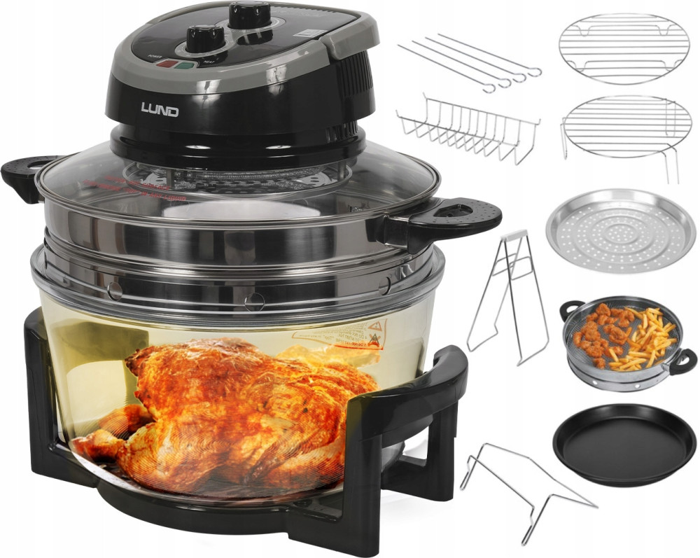 W odróżnieniu od innych, dostępnych na rynku kombiwarów halogenowych posiada również pierścień ze stali nierdzewnej z siatką do smażenia tuż pod źródłem ciepła – lampy halogenowej.