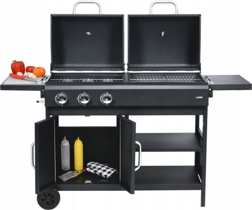 Składane półki boczne, półki pod częścią węglową oraz pojemna, zamykana szafka ułatwią przechowywanie przypraw, węgla i niezbędnych akcesoriów.