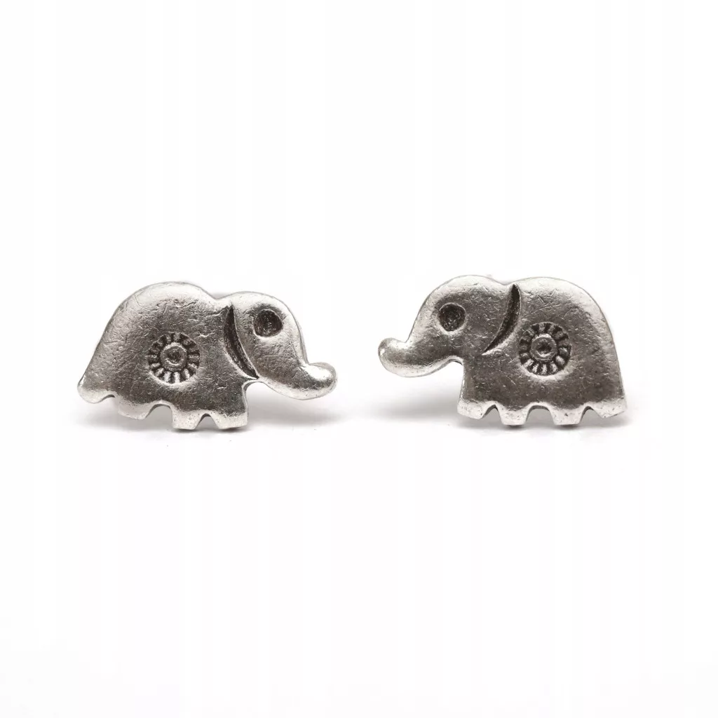 Figlarne małe kolczyki wkrętki w kształcie słoni wykonane ze srebra.