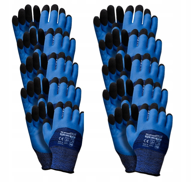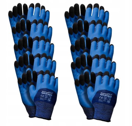 Rękawice wykonane z bezszwowej dzianiny poliestrowej, zakończone ściągaczem, powlekane do kości śródręcza wysokiej jakości gładkim lateksem, końcówki palców pokryte szorstkowanym lateksem.