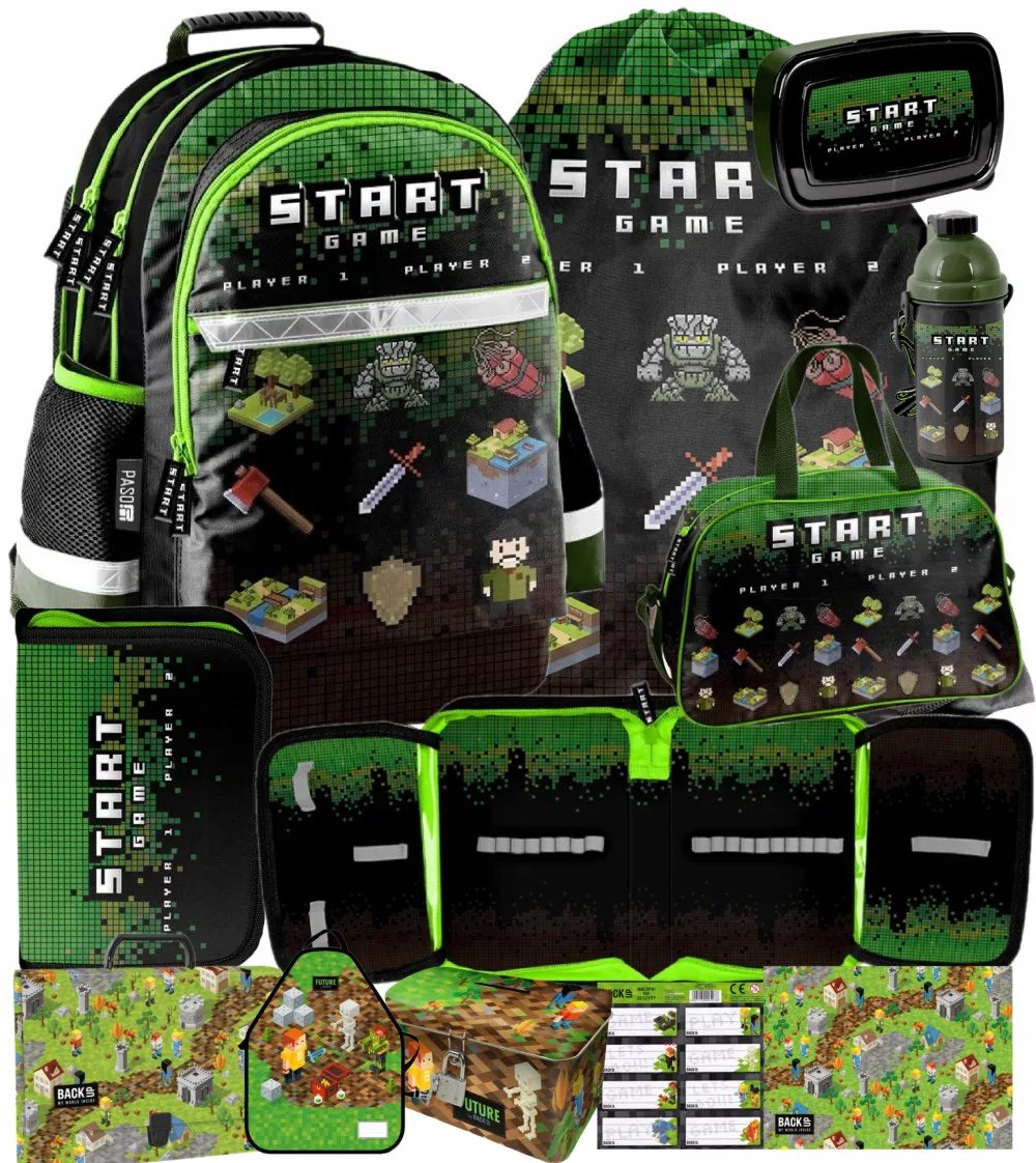 Najmodniejszy plecak szkolny dla chłopaka z najnowszej kolekcji Paso. Jest lekki i pojemny, rozmiarem dopasowany dla uczniów szkół podstawowych. Oryginalna czarno-zielona kolorystyka stanowi harmonijną całość i zachwyca małych klientów. Z przodu grafika z motywem Pikseli. Dedykowany jest dla fanów gier komputerowych.
