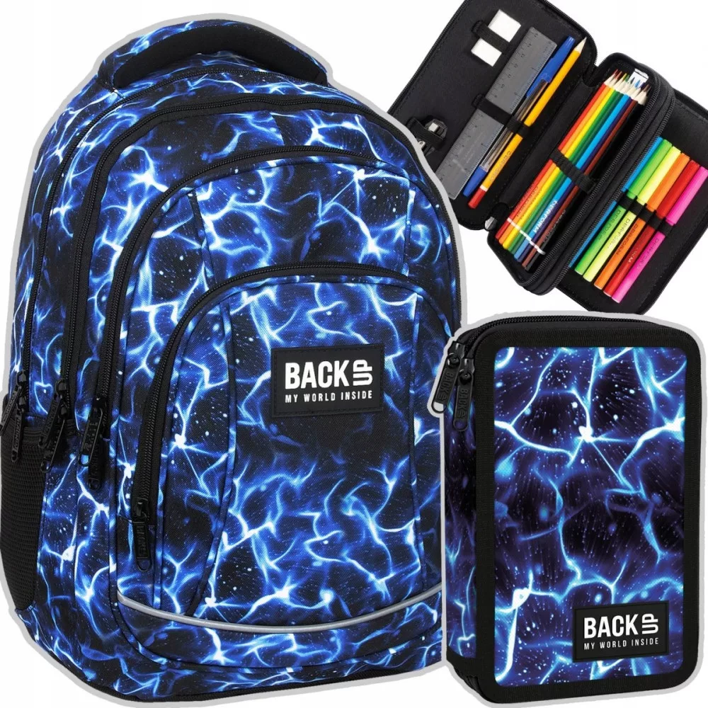 ZESTAW 2 el. Plecak szkolny młodzieżowy BackUP 26 L niebieskie wzory, SKY WATER (PLB6A47SET2CZ)