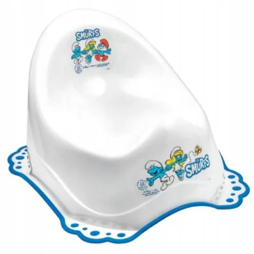 Nocnik z gumkami antypoślizgowymi SMERFY zaprojektowano z myślą o dziewczynkach i chłopcach, uwzględniono anatomię obu płci i zastosowano odpowiednio wysokie zabezpieczenie przed wydostaniem się nieczystości na zewnątrz.