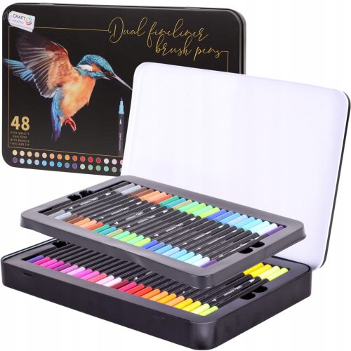Są to bardzo praktyczne pisaki dwustronne. Z jednej strony posiadają końcówkę pędzelkową do kaligrafii i kolorowania, z drugiej natomiast strony posiadają cienkopis, który doskonale sprawdzi się do dopracowywania detali.