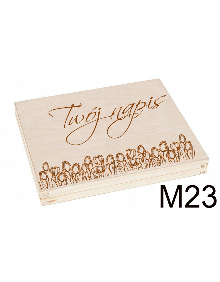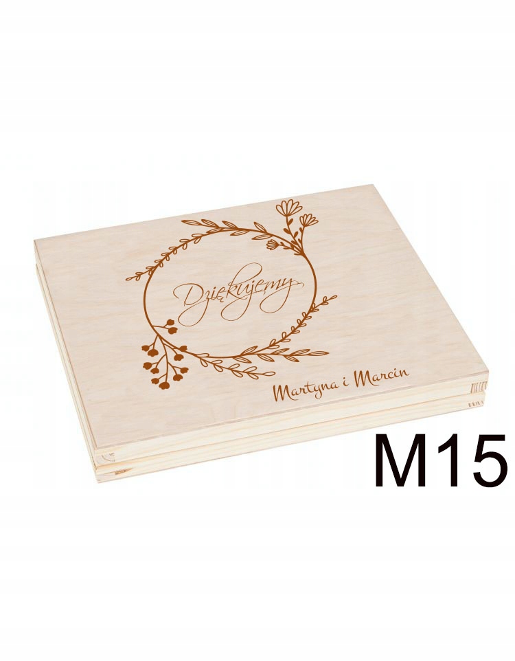 Dekoracyjne pudełko z Twoim indywidualnym tekstem, LOGIEM i wybranym grawerem dedykowane na każdą uroczystość, ewent firmowy czy gustowny prezent dla solenizanta. Pudełko na Merci, to produkt o wszechstronnym zastosowaniu. Można je wykorzystać na każdą okazję. Doskonale sprawdzi się jako podarunek dla bliskiej osoby. Idealne pudełko - jako naturalne opakowanie prezentu. Wewnątrz można umieścić czekoladki, cukiereczki, biżuterię, ramkę na zdjęcia itp. elementy o zbliżonych wymiarach. Drewniana powierzchnia nadaje się do zdobień techniką decoupage, dzięki której będzie wyjątkowe i niepowtarzalne. Pudełko zamykane jest na magnes- mamy pewność, że zawartość nie wysypie się. Wewnątrz gustowne serce z Twoim indywidualnym tekstem (możemy wykonać także bez dedykacji - wiadomość proszę umieścić w uwagach) oraz grawerowane wieczko zgodnie z wybranym wzorem. Posiadamy szeroką gamę wzorów na każdą uroczystość- zapraszamy na pozostałe nasze aukcje.
