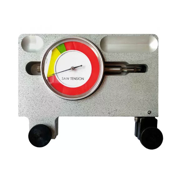 Przeznaczenie: Tensometr to urządzanie służące do precyzyjnego określenia prawidłowego naprężenia wstępnego piły. Ogranicza to skłonność piły taśmowej do pękania, ponieważ umożliwia kontrolowane ustawienie naprężenia w trakcie instalacji piły taśmowej na maszynie. Stosowanie tensometru zapewnia długą żywotność piły taśmowej i prostolinijność cięcia. Przyrząd wykonany jest z lekkiego odlewu aluminiowego, a żywe kolory na skali ułatwiają jego używanie. Urządzenie jest dostarczane w poręcznym metalowym opakowaniu wraz z instrukcją obsługi.