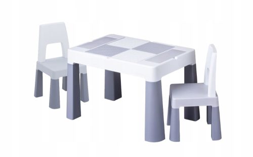 • Pokrywa większego blatu jest dwustronna: z jednej strony gładka - do rysowania, pisania i malowania; z teksturą z drugiej strony - staje się planszą kompatybilną z klockami popularnej marki (klocki nie są w zestawie z blatem).