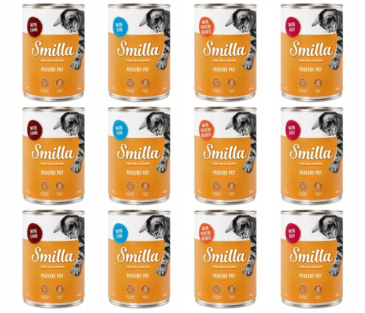 Twój kot nie może się doczekać, kiedy znowu otrzyma mokrą karmę Smilla? Smilla to wysokiej jakości karma podstawowa, która dostarczy kulinarnej rozkoszy nawet najwybredniejszym kotom. Pyszny drób w sosie własnym albo z dodatkiem starannie dobranych naturalnych składników oraz ważne witaminy i tauryna. Zapewnią one Twojemu mruczkowi wszystkie niezbędne do życia składniki odżywcze. Smilla nie tylko rozpieszcza Twojego kota, ale także dostarcza mu zdrowych i zbilansowanych składników. Wreszcie przyszedł czas na Smillę!