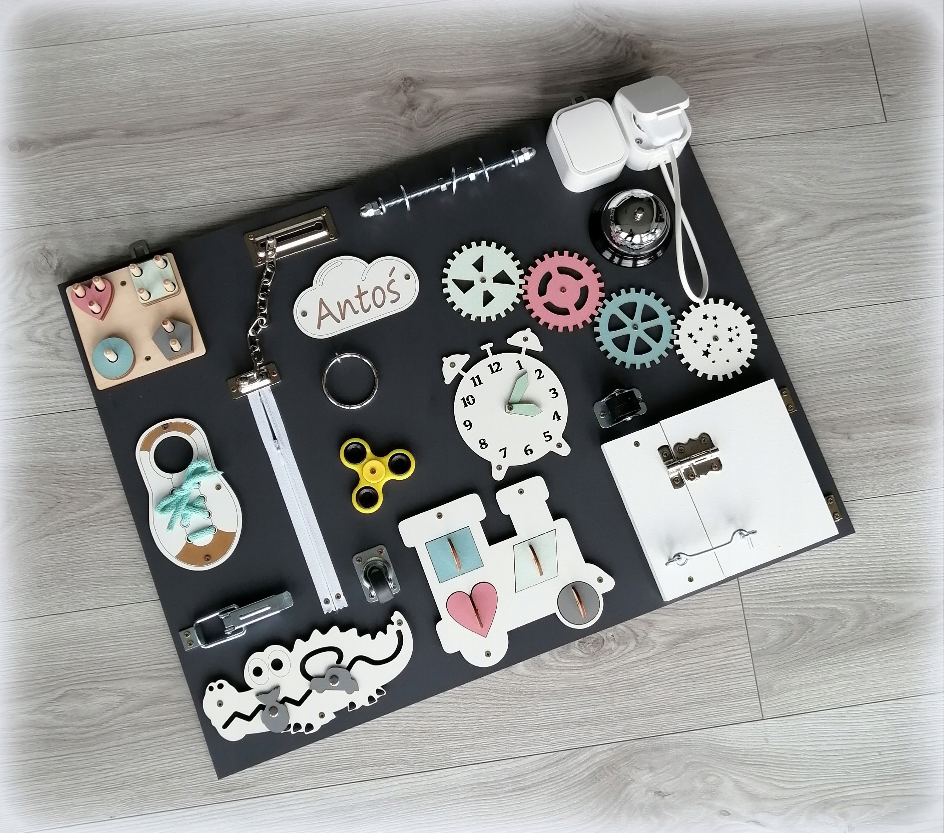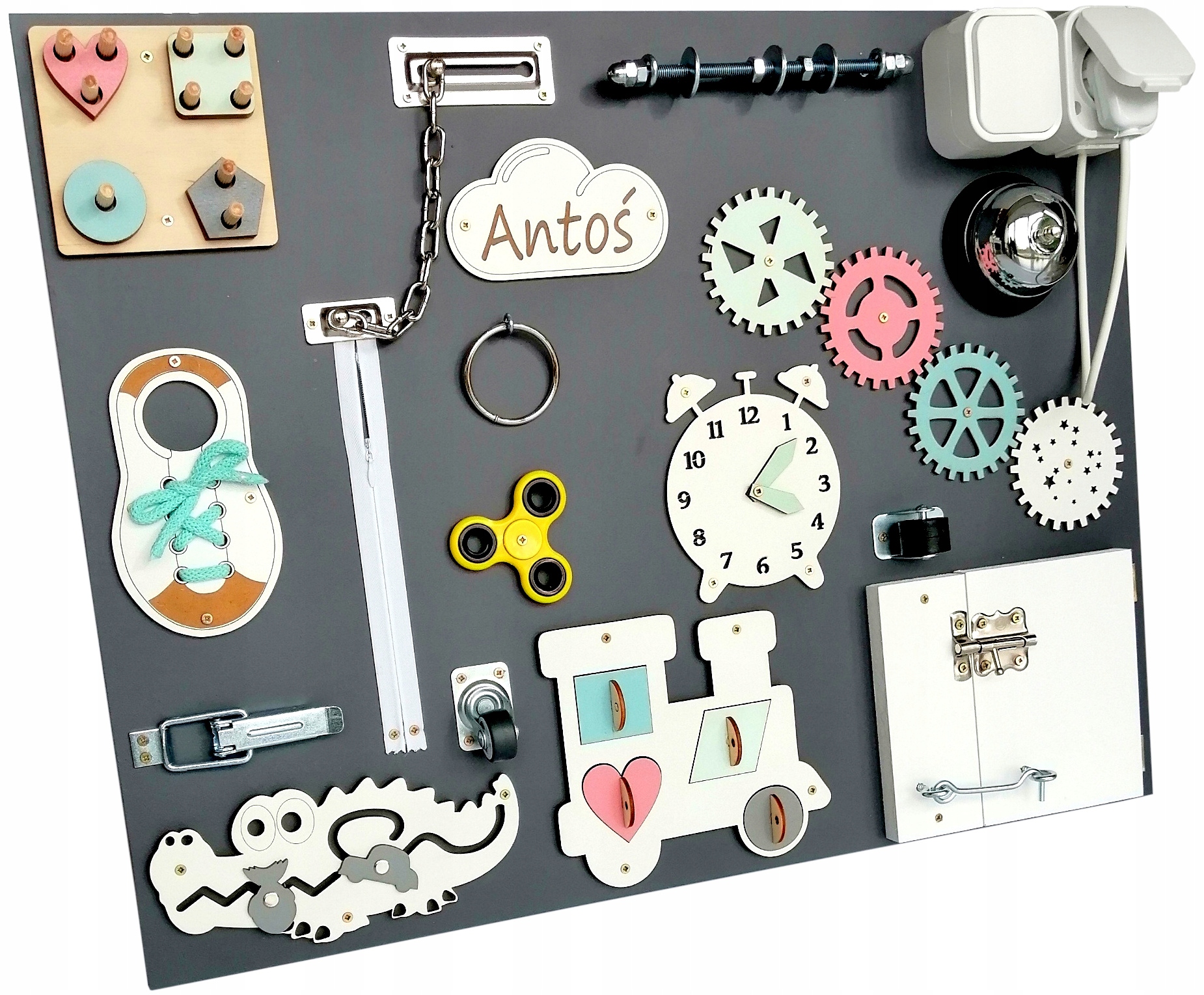 Zabawka powinna odbywać się pod nadzorem osoby dorosłej, w tablicy są elementy małe, mogące stanowić zagrożenie.