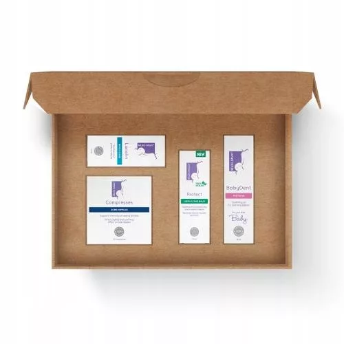 Specjalny zestaw produktów dla karmiącej mamy i jej ząbkującego maluszka. Zapakowany w eko pudełko. Idealny pomysł na prezent, z okazji pojawienia się nowego członka rodziny.