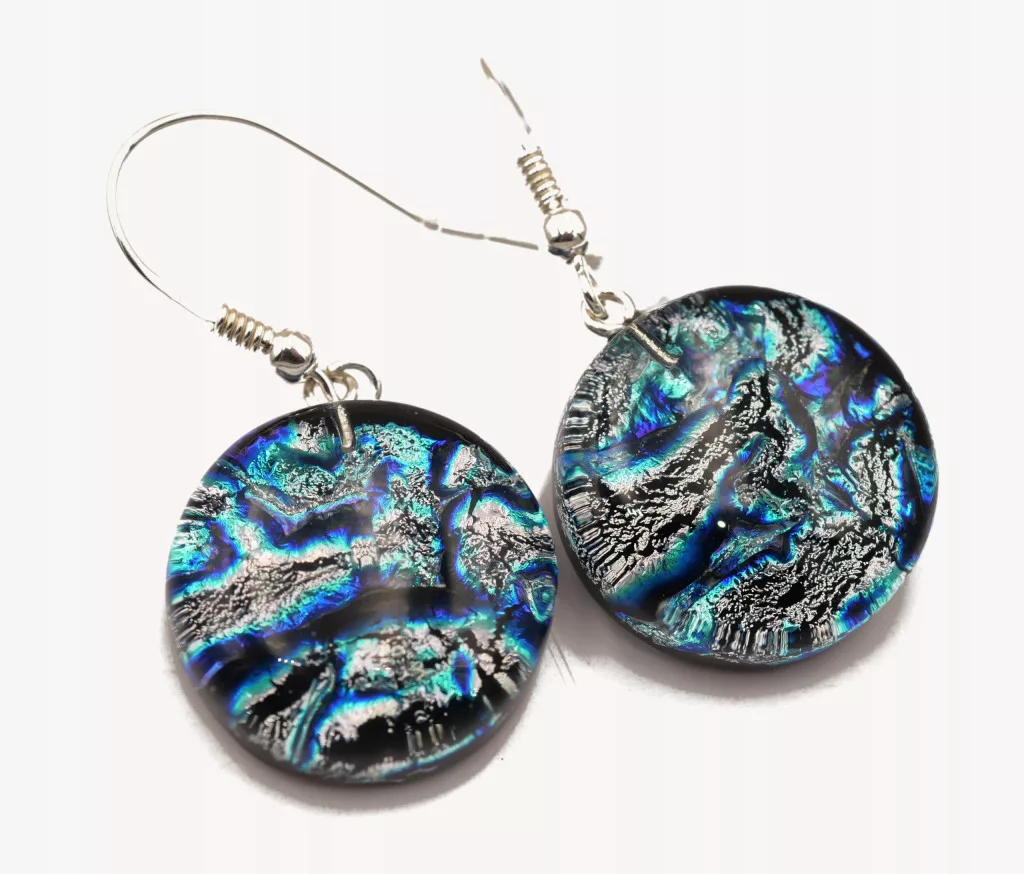 Wzory wykonane są ze szkła dichroicznego .Kolor zmienia się w zależności od kąta oświetlenia.