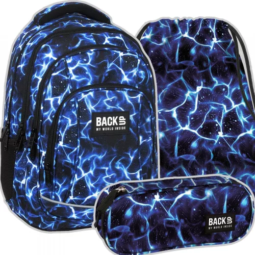 PLEČNIK BACKUP za šolsko mladino je popoln sopotnik za vsakega fanta. Ta 26 litrski plečnik v modri barvi z vzorcem nebesne vode je izjemno