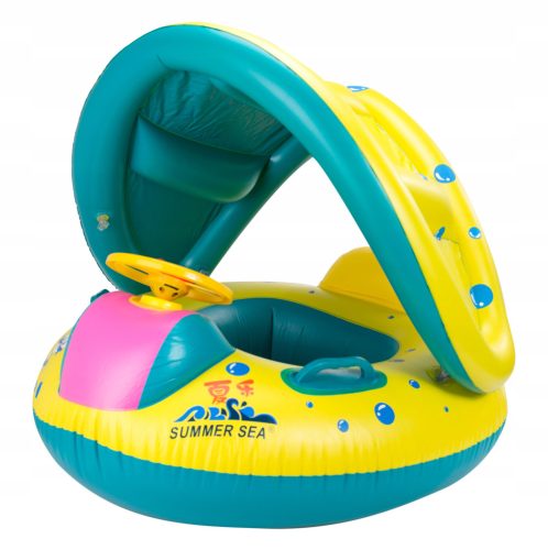 Od teraz Twoje maleństwo będzie bezpiecznie kąpać się z Tobą. Ponton jest zabezpieczony przed wypadnięciem dziecka, specjalne otwory na nogi umożliwiają siedzenie w pontonie bez potrzeby trzymania za koło. Dziecko podczas pływania może bawić się kierownicą lub innymi zabawkami do wody. Koło wyposażone jest w daszek, który będzie chroniła dziecko przed słońcem. Pontonik jest kolorowy i na pewno spodoba się każdemu dziecku.
