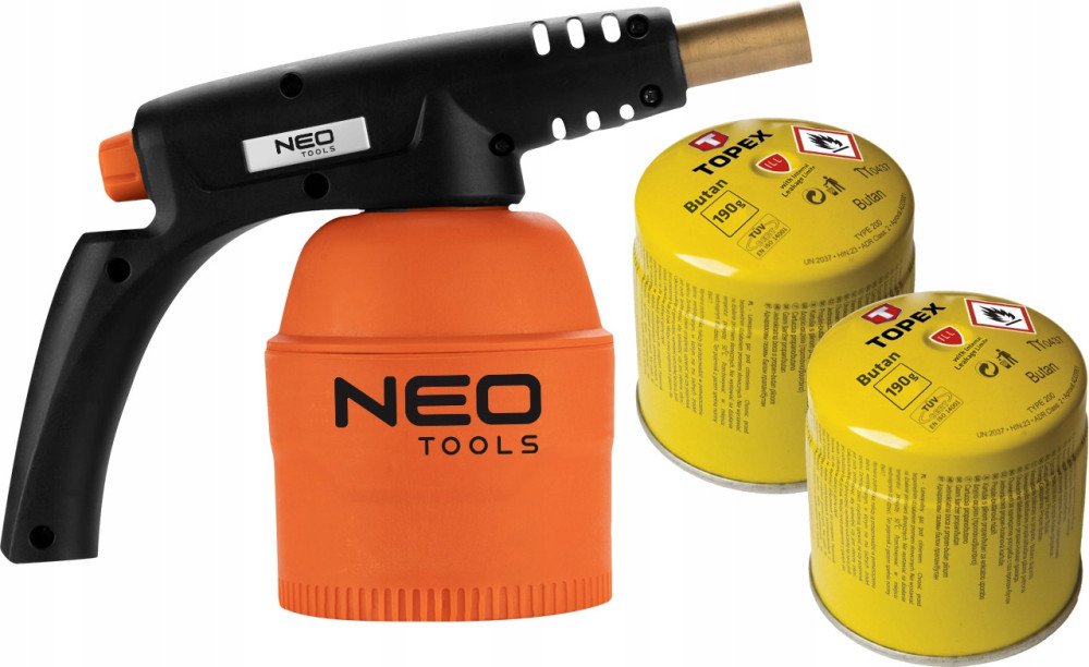 Lampa lutownicza gazowa NEO (nr ref. 20-022) na naboje 190 g, temperatura pracy 1350°C, moc 1.9KW. Metalowa obudowa doskonale chroni nabój z gazem, co podnosi bezpieczeństwo pracy lampą i wydłuża jej żywotność. Posiada zapłon piezo, który pozwala na szybkie odpalenie lampy. Marka NEO spełnia oczekiwania profesjonalistów.
