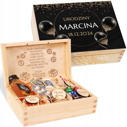 ⭐Elegancka Skrzynka z przegrodami na mini prezenciki to nie tylko stylowe opakowanie, ale również trwała pamiątka. Wykonana z solidnego drewna, ozdobiona personalizowaną dedykacją, stanowi idealny upominek dla solenizanta.