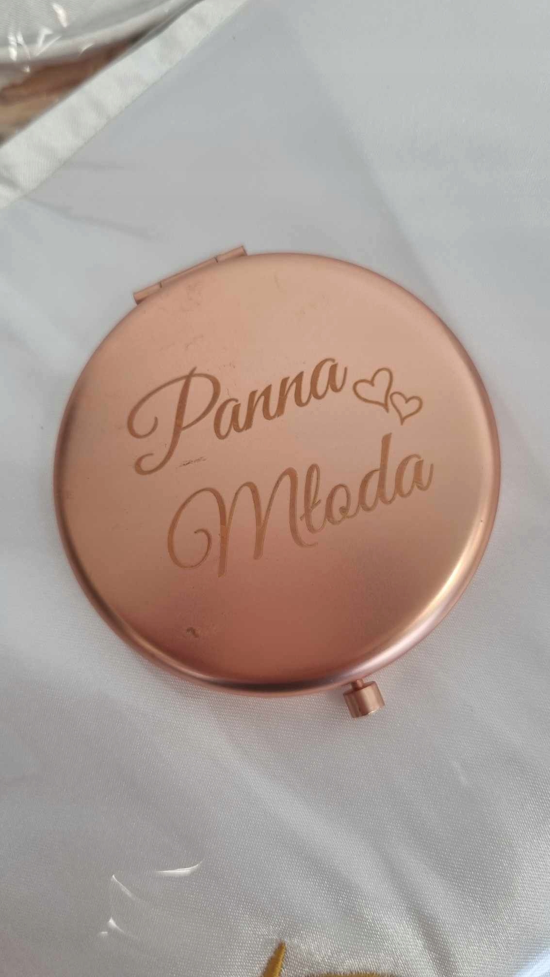 Wykonane w pięknym, różowo-złotym kolorze z napisem "Panna Młoda" i subtelnym serduszkiem, dodaje uroku każdemu momentowi. Kompaktowe i lekkie, idealnie mieści się w torebce, co czyni je niezastąpionym podczas szybkich poprawek makijażu w trakcie przygotowań do ślubu. Wyjątkowy design sprawia, że jest nie tylko funkcjonalnym, ale także stylowym akcesorium, które każda panna młoda będzie chciała mieć przy sobie.
