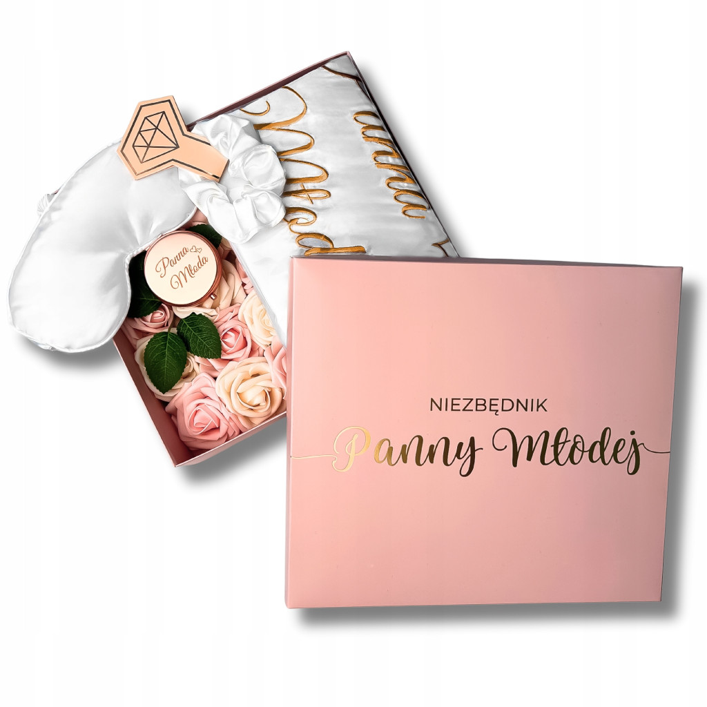 Cały zestaw jest starannie zapakowany w piękne, eleganckie pudełko prezentowe, które już na pierwszy rzut oka zachwyca swoim wyglądem. Pudełko jest wypełnione delikatnymi, ozdobnymi różami, które dodają mu wyjątkowego uroku i podkreślają wyjątkowość chwili. Nie musisz się martwić o dodatkowe opakowanie - nasz niezbędnik jest gotowy do wręczenia od razu po otrzymaniu. To doskonały wybór na prezent, który z pewnością wywoła uśmiech i wzruszenie na twarzy każdej przyszłej panny młodej.