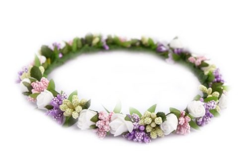 • Subtelny wianek  wykonany ręcznie z delikatnych sztucznych kwiatków piankowych oraz dodatkow florystycznych dobrej jakosci