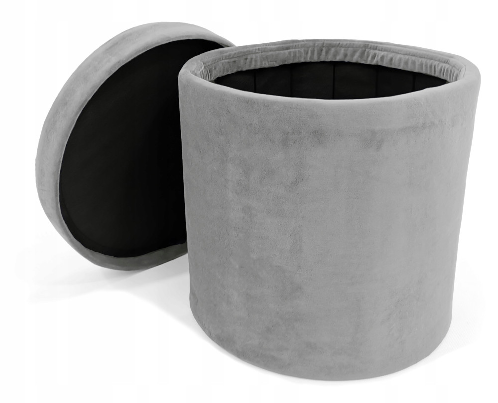 PUFA OKRĄGŁA OTWIERANA SCHOWEK POJEMNIK jasno szary