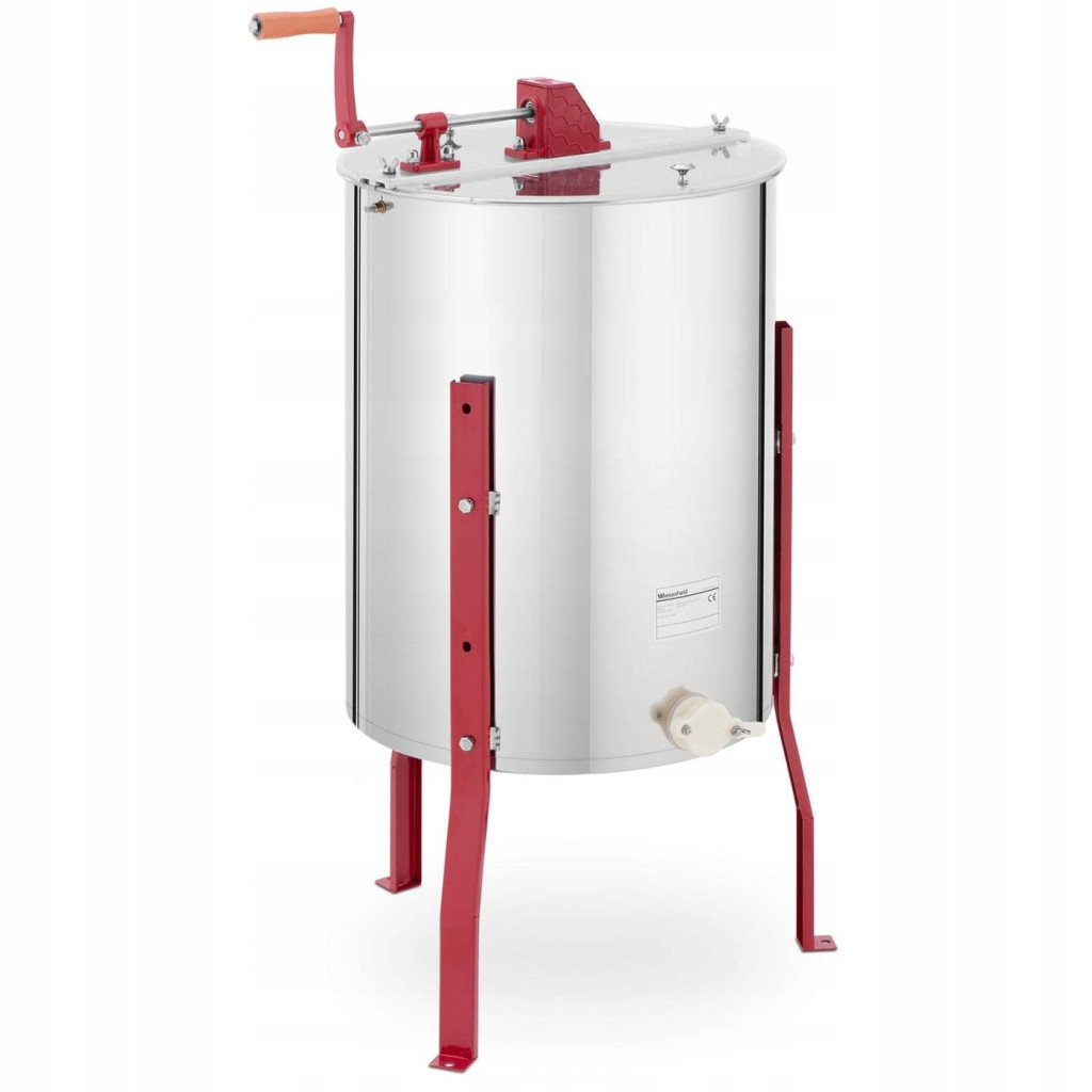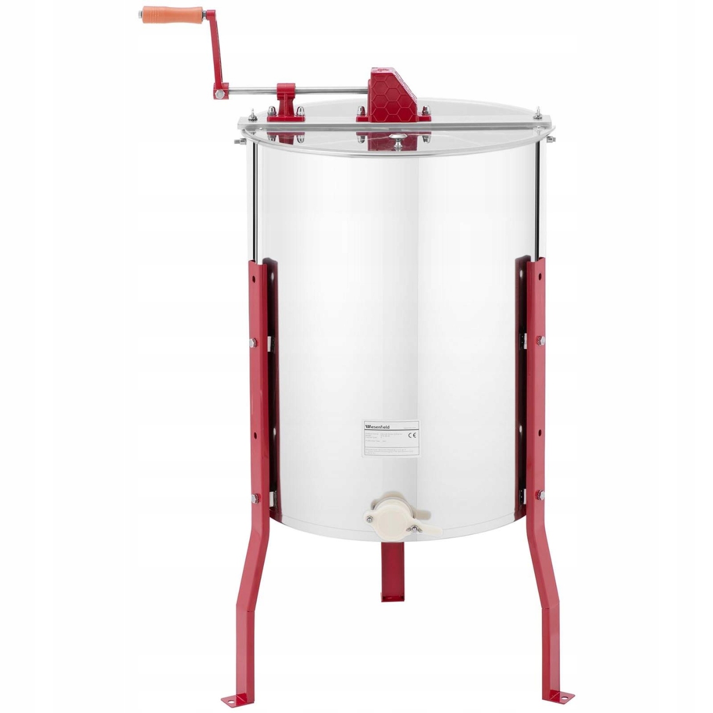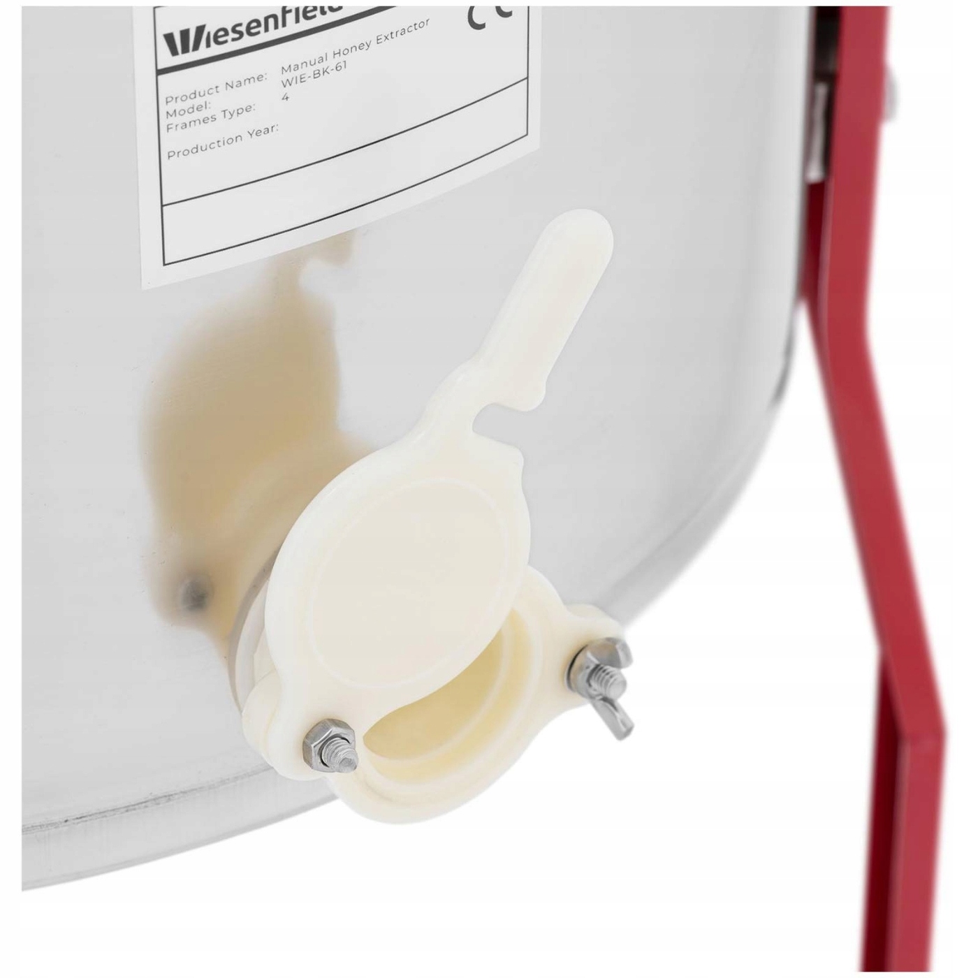 Miodarki, takie jak model WIE-BK-61, umożliwiają łatwe spływanie miodu, a także wyciąganie większych plastrów. Dzięki pojemności na 4 ramki o maksymalnym rozmiarze 500 x 245 mm w zaledwie kilku cyklach odwirujesz cały miód. Duża średnica zbiornika 47 cm pozwala uzyskać wystarczającą siłę odśrodkową do wydajnego oddzielenia miodu od plastra. Miodarka 2 ramkowa jest obsługiwana ręcznie za pomocą żelaznej korby. Za jej pomocą regulujesz prędkość ekstraktora do miodu.