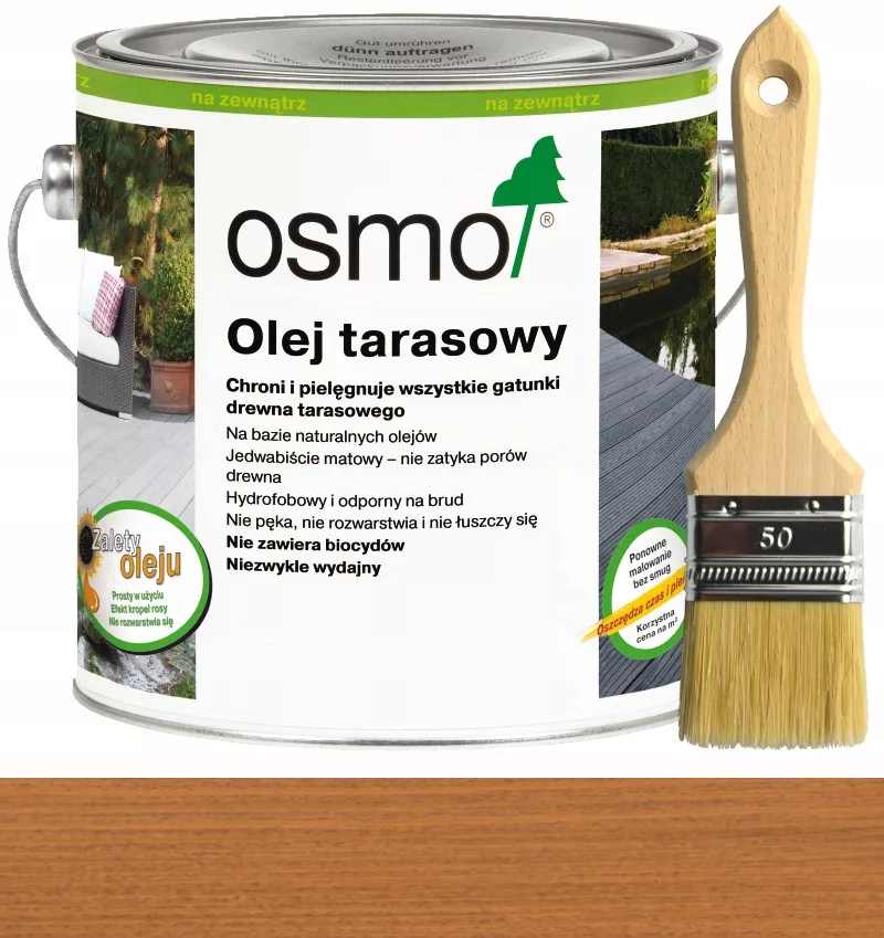 Ten nowoczesny olej do tarasów tworzy hydrofobową, mikroporowatą powłokę, która pozwala drewnu swobodnie oddychać, redukując pęcznienie i kurczenie się drewna. Dzięki temu nie pęka, nie łuszczy się ani nie odpryskuje (tak robią to wszystkie lakiery do drewna). Oleje tarasowe wygładzają powierzchnię drewna, pielęgnują je i zabezpieczają przed wnikaniem brudu i wody.