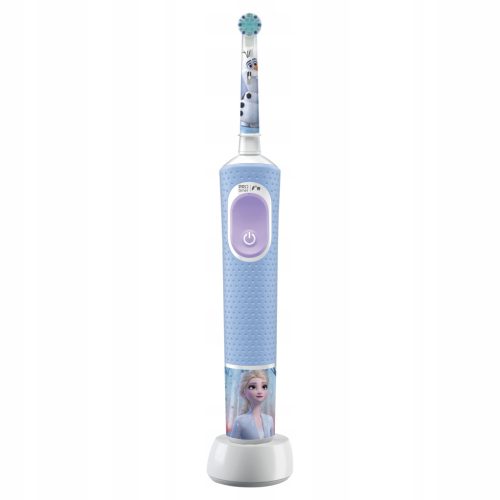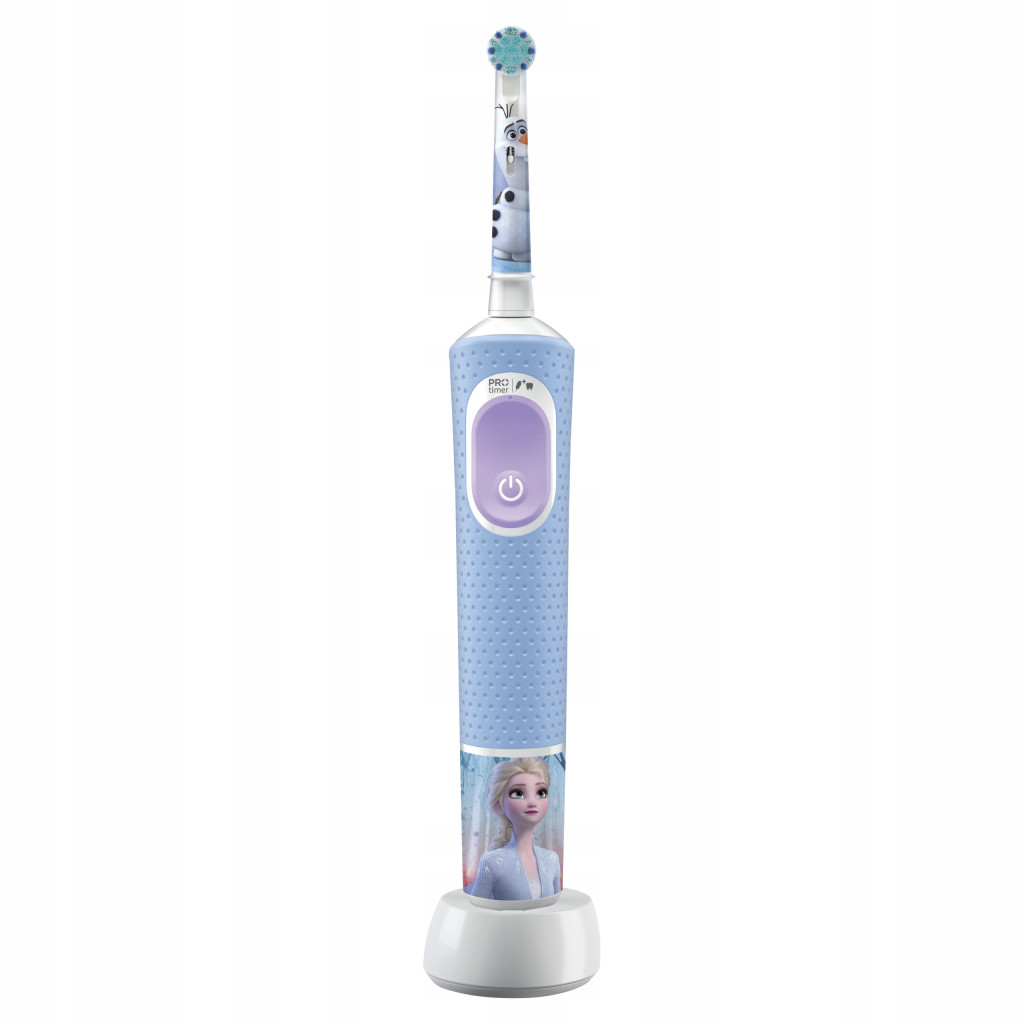 Szczoteczka elektryczna Oral-B Pro Kid, rekomendowana przez dentystów dla dzieci w wieku powyżej 3 lat, zapewnia delikatne oraz skuteczne czyszczenie. Dzięki 2 trybom szczotkowania, w tym wyjątkowemu, przyjaznemu dla dzieci trybowi delikatnego czyszczenia, szczoteczka łagodnie czyści zęby dziecka. Usuwa więcej płytki bakteryjnej niż zwykła szczoteczka manualna.