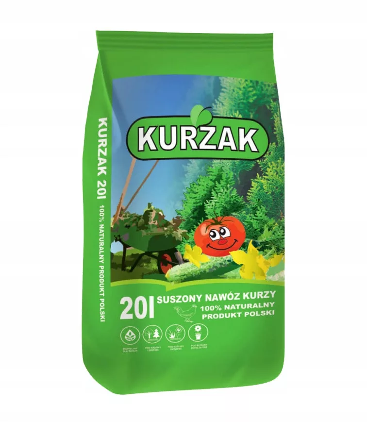 Idealnie nadaje się do uprawy roślin warzywniczych, sadowniczych, rolnych. Można nawozić nim wszystkie rośliny ozdobne: trawy, krzewy, kwiaty doniczkowe. 20 l kurzaka wystarcza na 20-40 m².