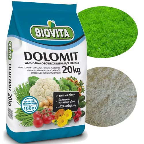 Dolomit to produkt o wysokiej zawartości węglanu wapnia oraz magnezu. Przeznaczony jest do odkwaszania i nawożenia kwaśnych, ubogich w pierwiastki gleb. Zalecany jest do stosowania na wszystkich rodzajach gleby. Spełnia zatem podwójną rolę: odkwasza glebę i zwiększa w niej zawartość magnezu i wapnia. Dostarcza również szeregu innych pierwiastków oraz mikroelementów wpływających bardzo pozytywnie na wegetację i plonowanie roślin.