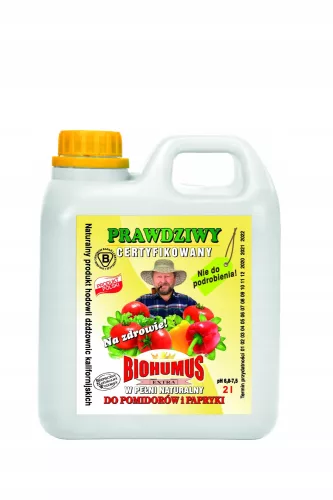 BIOHUMUS EXTRA DO POMIDORÓW I PAPRYKI to w pełni naturalny nawóz w roztworze wodnym przeznaczony do zasilania upraw gruntowych i doniczkowych wszystkich odmian pomidorów oraz papryki.