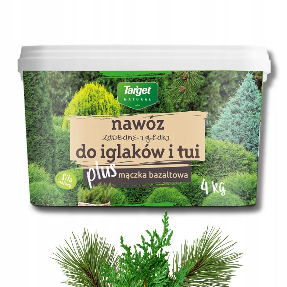 Nawóz Zadbane Iglaki do iglaków i tui z mączką bazaltową serii Target Natural jest dedykowaną mieszanką składników pokarmowych, która kompleksowo odżywia i dba o zdowie oraz kondycję iglaków. Specjalistyczny nawóz został stworzony z myślą o specyficznych wymaganiach tych roślin i zapewnia dostarczenie niezbędnych makro i mikroelementów do prawidłowego wzrostu i rozwjou iglaków i tui.