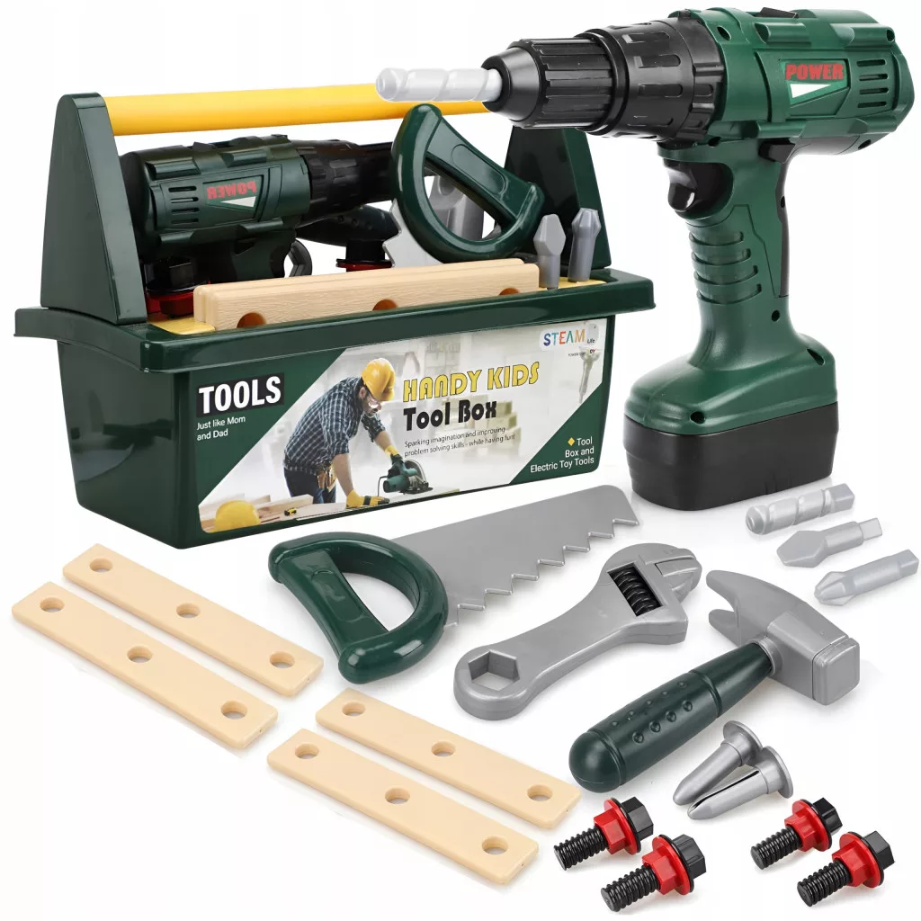 ???????? Nasz zestaw narzędzi dla dzieci w przenośnej skrzynce z uchwytem zawiera wszystko, czego potrzeba, aby rozpocząć przygodę z majsterkowaniem. Od wkrętarki na baterie i młotka, po piłę ręczną i klucz, to kompletny zestaw, który zapewni godziny wspaniałej zabawy.