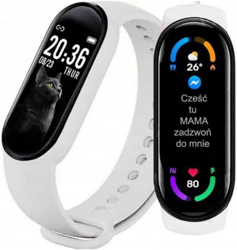 SmartBand M6 NAJNOWY MODEL OPASKI następca opaski M5 w języku POLSKIM posiada bardzo rozbudowany system powiadomień, który po połączeniu z telefonem pozwala na odczytywanie wiadomości z popularnych serwisów, jak np. Twitter, Facebook, Whats|App. Dodatkowo M6 pokazuje godzinę, datę, liczy kroki, spalone kalorie, pokonany dystans, mierzy czas, monitoruje puls, ciśnienie i natlenienie krwi. Ponadto mierzy jakość snu. Informuje użytkownika o przychodzących połączeniach telefonicznych, wiadomościach sms, wiadomościach tekstowych z wielu komunikatorów.