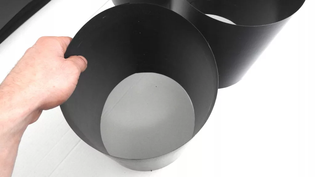 Doniczki są produkowane z folii PVC w odcieniach szarości i brązu mix (doniczki różnią się kolorem ). Produkt wielokrotnego użytku łatwy w przechowywaniu ,składa się na płasko w i nie zajmuje dużo miejsca .Dostępne również inne wymiary .