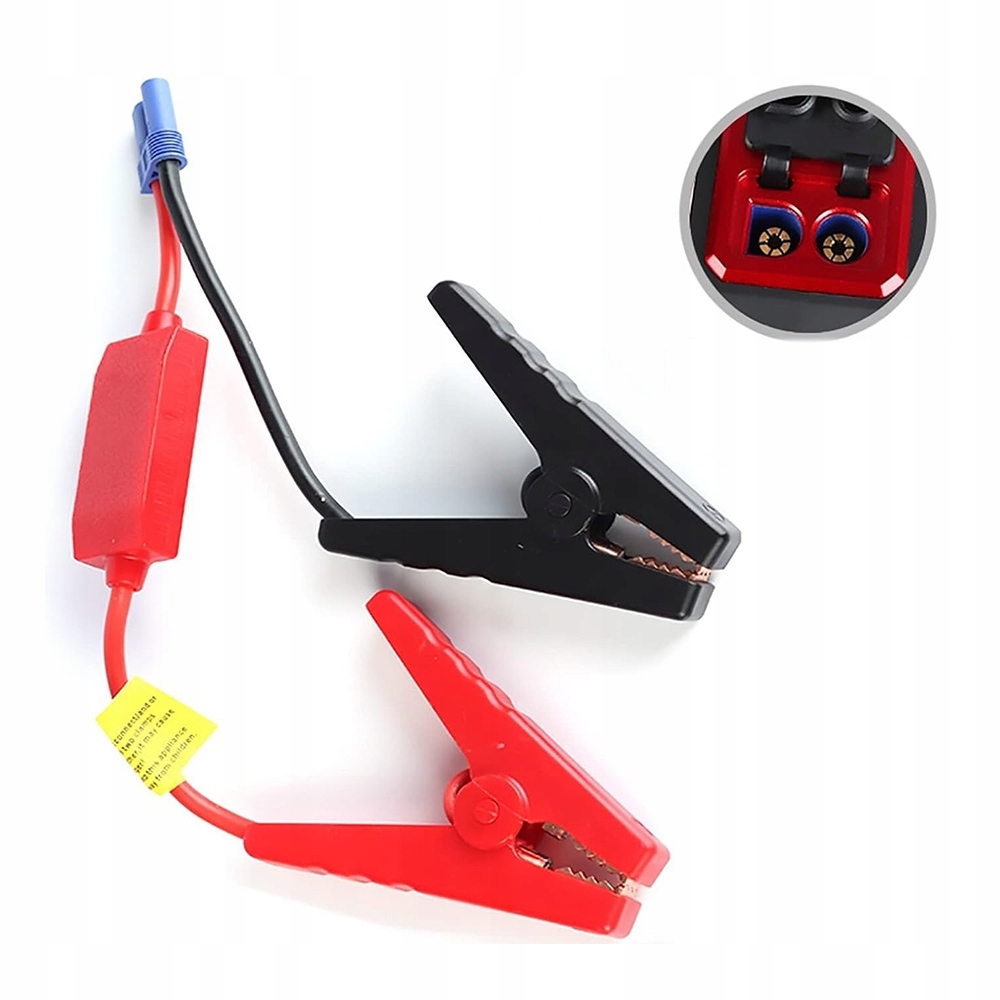 -W zestawie wraz z jump starterem znajdziemy niemalże wszystkie niezbędne przewody i akcesoria.