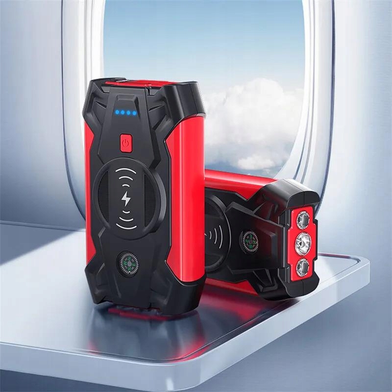 -Może być używany jako awaryjny zasilacz rozruchowy dla pojazdów z silnikiem Diesla i benzyną 12 V, a także obsługuje bezprzewodowe ładowanie telefonów komórkowych.