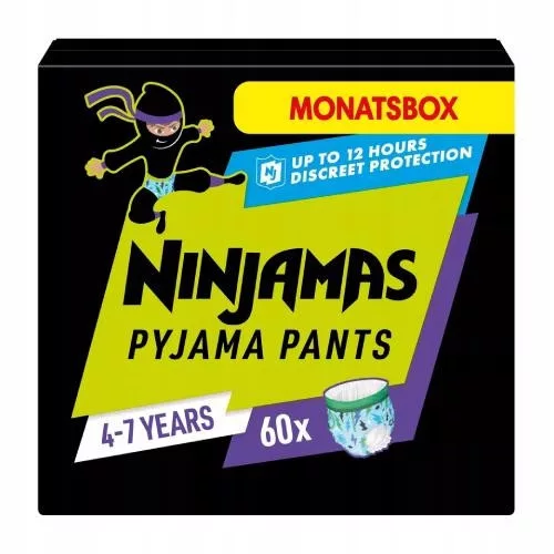 PAMPERS NINJAMAS Pieluchomajtki na noc dla chłopców 4-7 lat (17-30 kg), 60 szt.