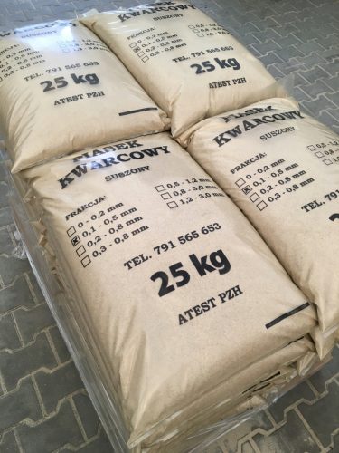 Piasek wydobywany jest spod lustra wody, posiada sferyczny kształt ziarna, a jego wilgotność nie przekracza 0,2%.