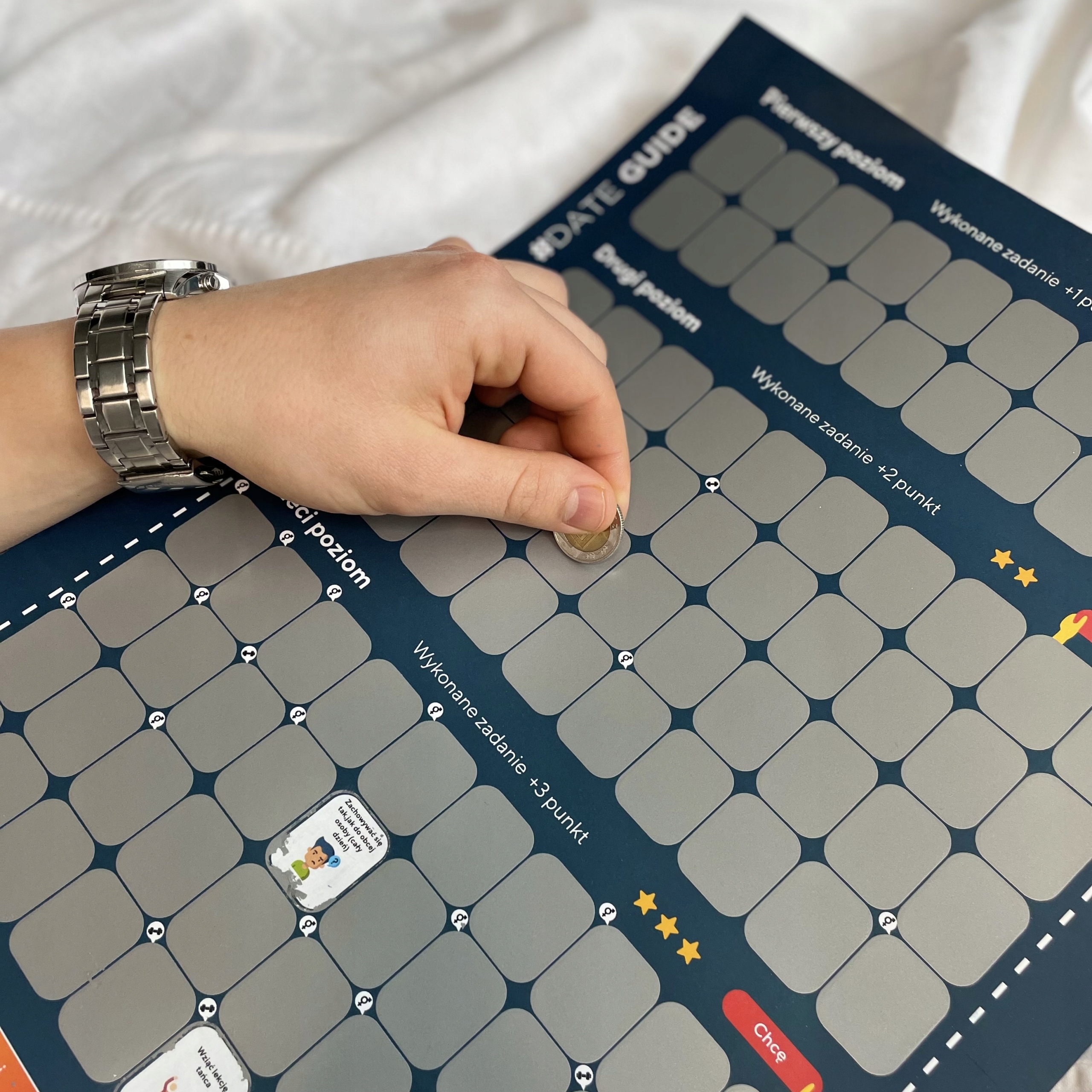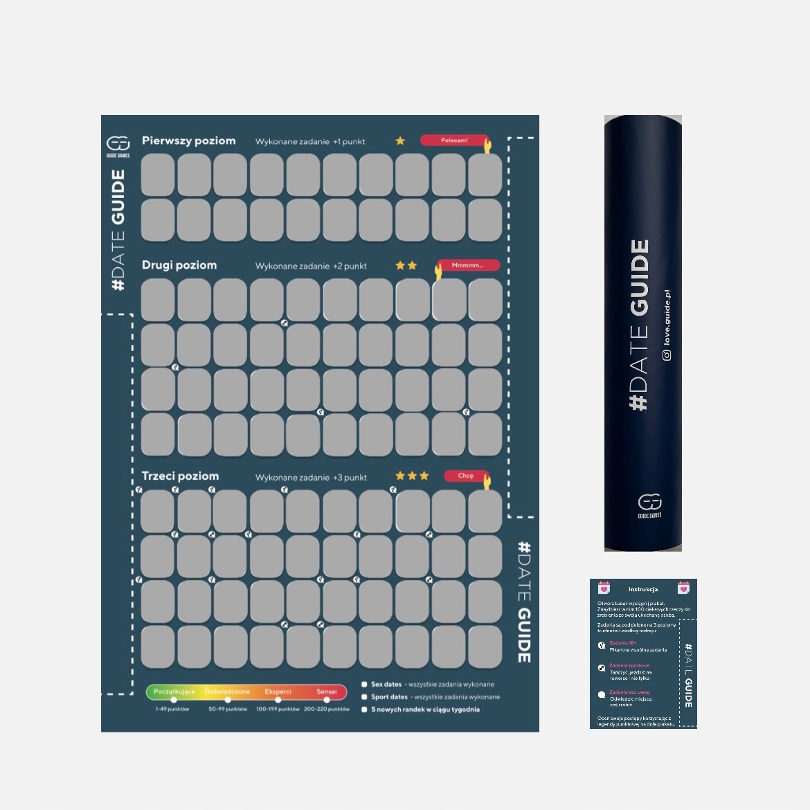 Zdrapka #DATE GUIDE dla pary to wymarzony prezent na Walentynki lub rocznicę, bo szybko się nie znudzi. Dzięki niej święto miłości będzie trwać cały rok! Przeżycia na zdrapce zostały skonstruowane tak, by pobudzały wyobraźnię i tworzyły piękne wspomnienia, które z przyjemnością przywołacie po latach.