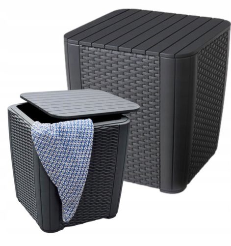 Ten wielozadaniowy mebel wyróżnia się nie tylko funkcjonalnością, ale i estetyką wykonania – oryginalną rattanową strukturą w klasycznym odcieniu. Proste w swojej formie siedzisko dostępne w kolorze brązowym oraz grafitowym podkreśli aranżację Twojego ogrodu!
