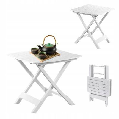 Stolik turystyczny wykonany z tworzywa sztucznego w kolorze białym na taras, balkon, kemping o wymiarach: 50x44x44 cm