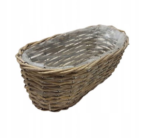 Przeznaczenie: kosz wiklinowy do nasadzeń kwiatowych, na kwiaty, osłona z wikliny na doniczki, wiklinowa donica, wiklinowa osłonka na doniczki, na kwiaty doniczkowe, koszyk z folią na kwiaty, balkonówka kwietnik.