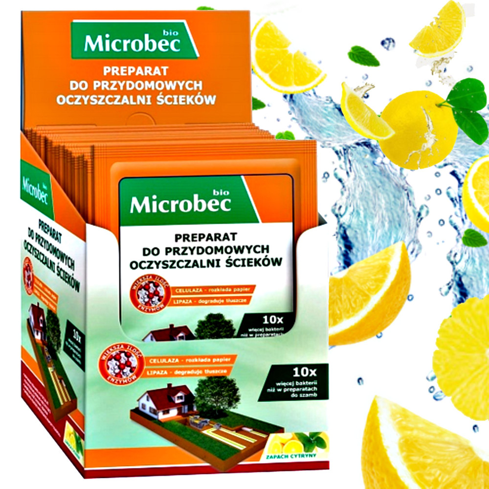 Ten innowacyjny środek mikrobiologiczny jest przeznaczony do użytku w przydomowych oczyszczalniach ścieków. Jego zaawansowana formuła przyczynia się do poprawy efektywności oczyszczalni: przyspiesza degradację ścieków, zmniejsza nieprzyjemne zapachy oraz ogranicza ilość gęstego osadu. Pozwala to na rzadsze usuwanie nadmiaru szlamu z oczyszczalni. Skuteczność produktu przewyższa uniwersalne preparaty (stosowane także do szamb) dzięki jego specjalnie dopasowanemu składowi, idealnemu do przydomowych systemów oczyszczania ścieków.