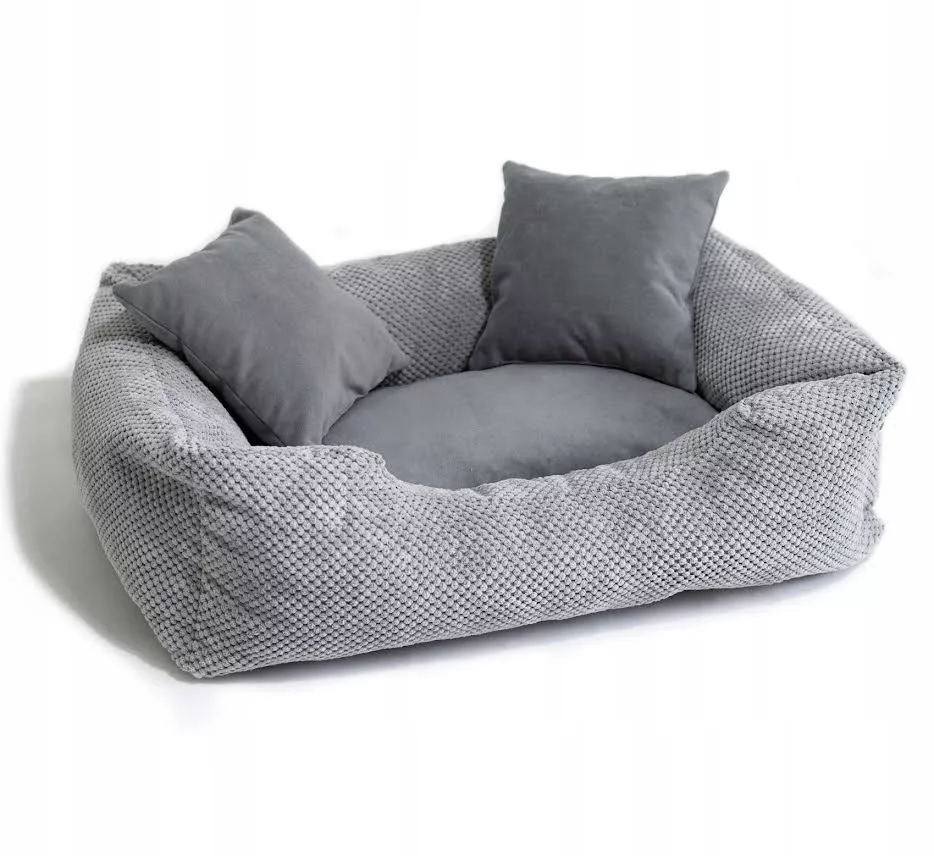 Legowisko dla Twojego pupila w formie kanapy zapewni wyjątkowy komfort podczas snu. Usztywnione boki oraz grube wypełnienie piankowe wspomagają stawy oraz kręgosłup zwierzęcia. Legowisko zostało wykonane z najwyższej jakości produktów. Zastosowane tkaniny charakteryzują się wysoką wytrzymałością oraz odpornością na zaciągnięcia i zadrapania. Spód został wykonany ze specjalnego materiału antypoślizgowego. Warstwa gumowych kropek umieszczonych na spodniej warstwie pełni rolę stabilizatora w tkaninie. Legowisko jest bardzo łatwe w utrzymaniu czystości. Posiada dwa wszyte zamki błyskawiczne (na bokach i spodzie), które umożliwiają wyciągnięcie wypełnienia, dzięki czemu można wyprać pokrowiec zgodnie z zaleceniami na metce. Wybierając wypełnienie z recyklingu przyczyniasz się do redukcji negatywnego wpływu na naszą planetę. Poprzez wtórne wykorzystanie materiałów powstałych przy produkcji materacy, zmniejszamy ilość odpadów i ograniczamy zużycie nowych surowców. W naszej ofercie znajduje się wiele rozmiarów oraz wersji kolorystycznych produktu. Jest to produkt Polski.