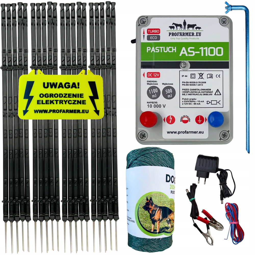 Przedstawiamy kompletne ogrodzenie elektryczne, które doskonale sprawdzi się w Państwa ogrodzie. CZARNY kolor PALIKÓW i OLIWKOWA PLECIONKA sprawiają, że pastuch dobrze się wpasowuje się w zielone otoczenie. Prezentowany zestaw sprawdzi się doskonale w Państwa ogrodzie jako pastuch na PSA albo WYDRĘ.