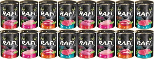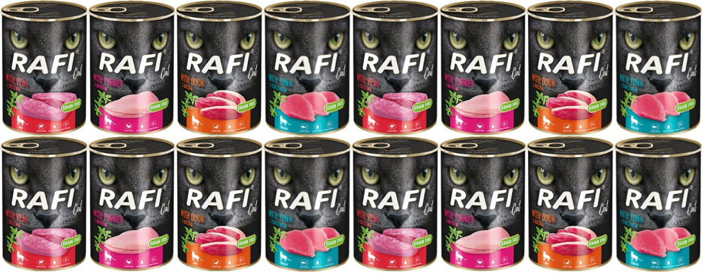 mięso i produkty pochodzenia zwierzęcego 65% (mięso z kaczki/cielęciny/tuńczyka/indyka 4%), oleje i tłuszcze (olej lniany 0,6%, olej z łososia 0,5%), substancje mineralne, tymianek suszony 0,01%.