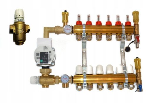 Rozdzielacz skonfigurowano pod kątem systemów ogrzewania płaszczyznowego - podłogowego.